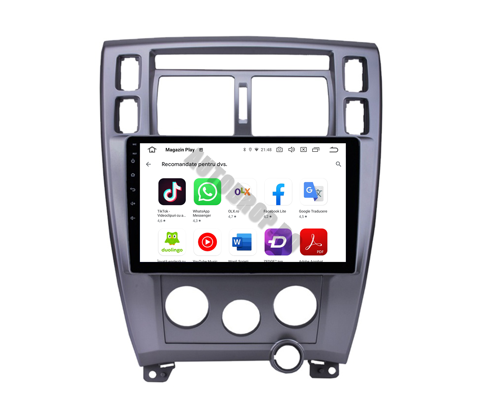Aplicații Playstore, precum Youtube, Waze, Sygic, Google Maps, Facebook, WhatsAPP, Netflix, TV/Radio Online, Google Voice Control, Instagram, etc.