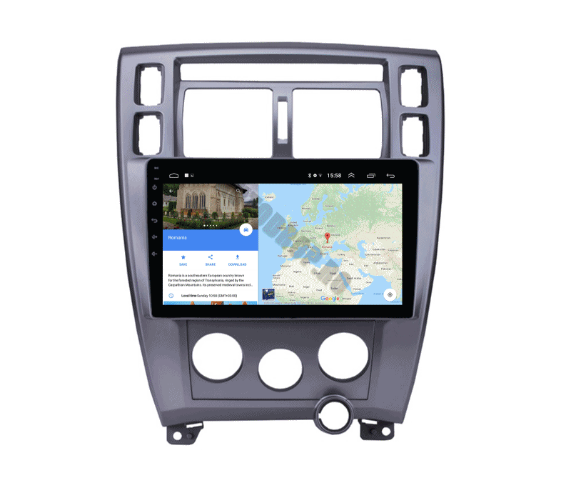 Suport online și offline pentru Navigatia GPS, susține Hărti 3D și îndrumare vocală în diverse limbi disponibile, majoritatea deja setate în limba romană.