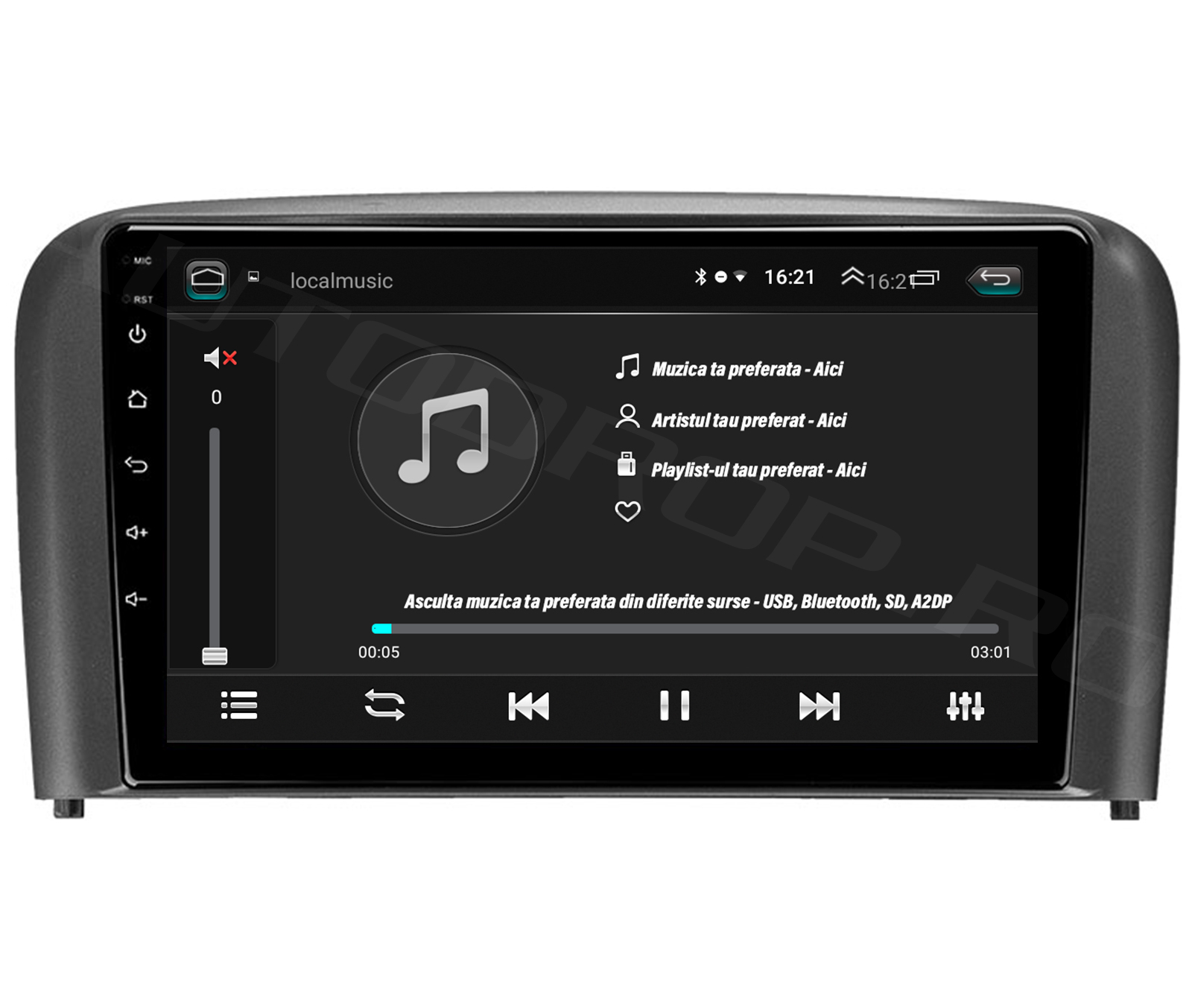 Funcție RDS ce permite afișajul în timp real al frecvenței Radio și denumirea acestuia. Odată salvate posturile principale, aplicația radio o să le recunoască automat după denumirea lor.