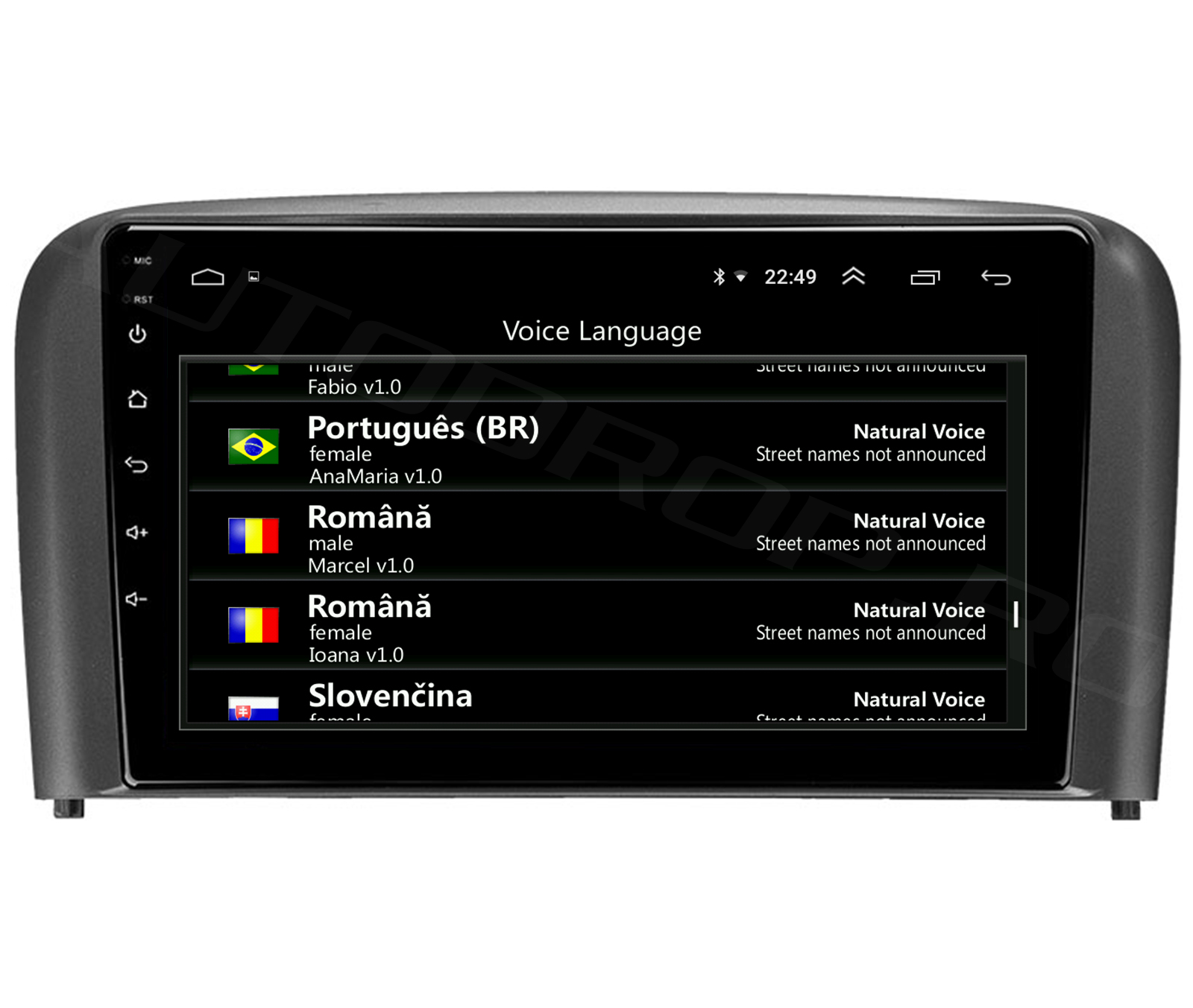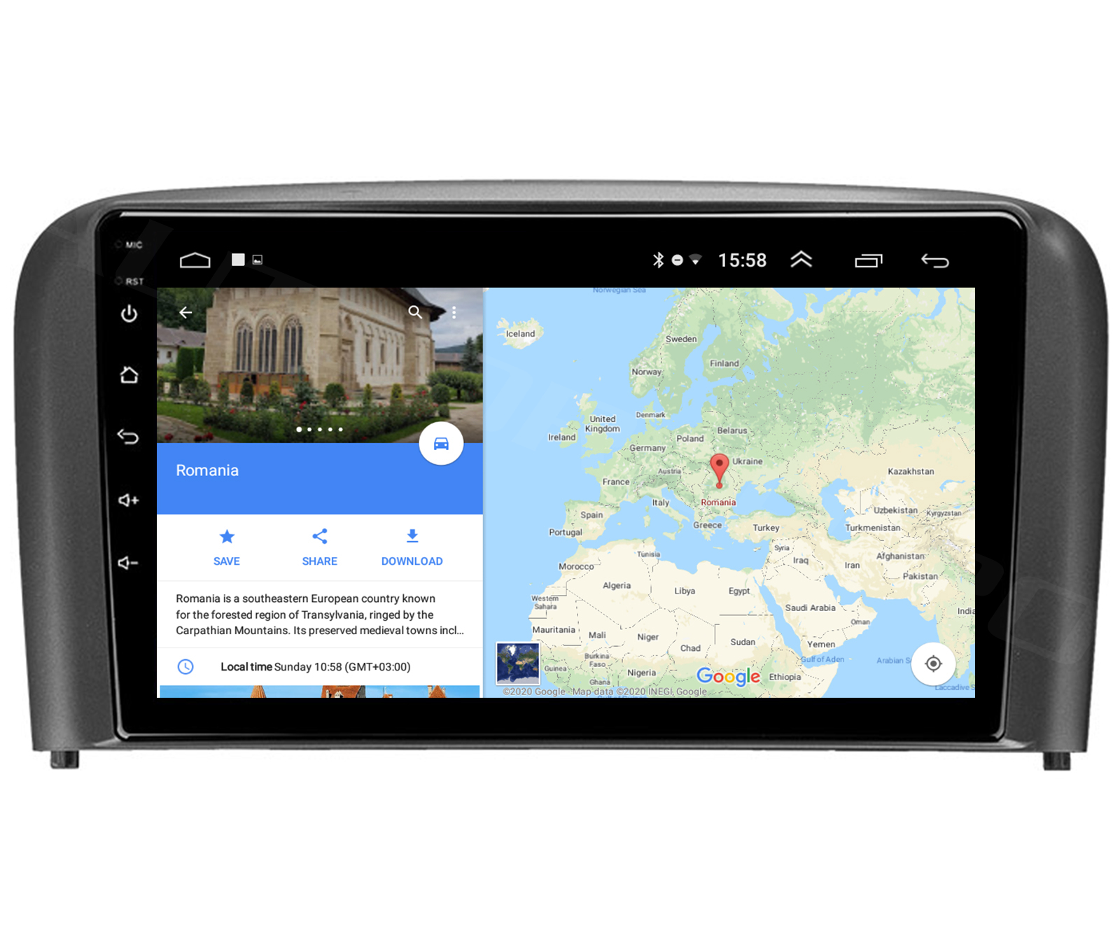 Suport online și offline pentru Navigatia GPS, susține Hărti 3D și îndrumare vocală în diverse limbi disponibile, majoritatea deja setate în limbă romană.