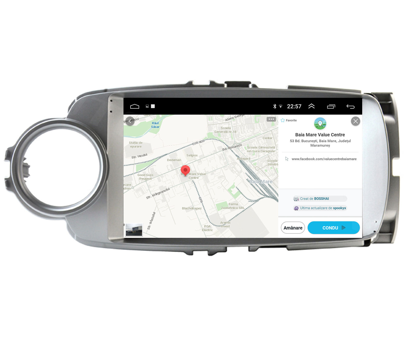 Suport online și offline pentru Navigatia GPS, susține Hărti 3D și îndrumare vocală în diverse limbi disponibile, majoritatea deja setate în limbă romană.